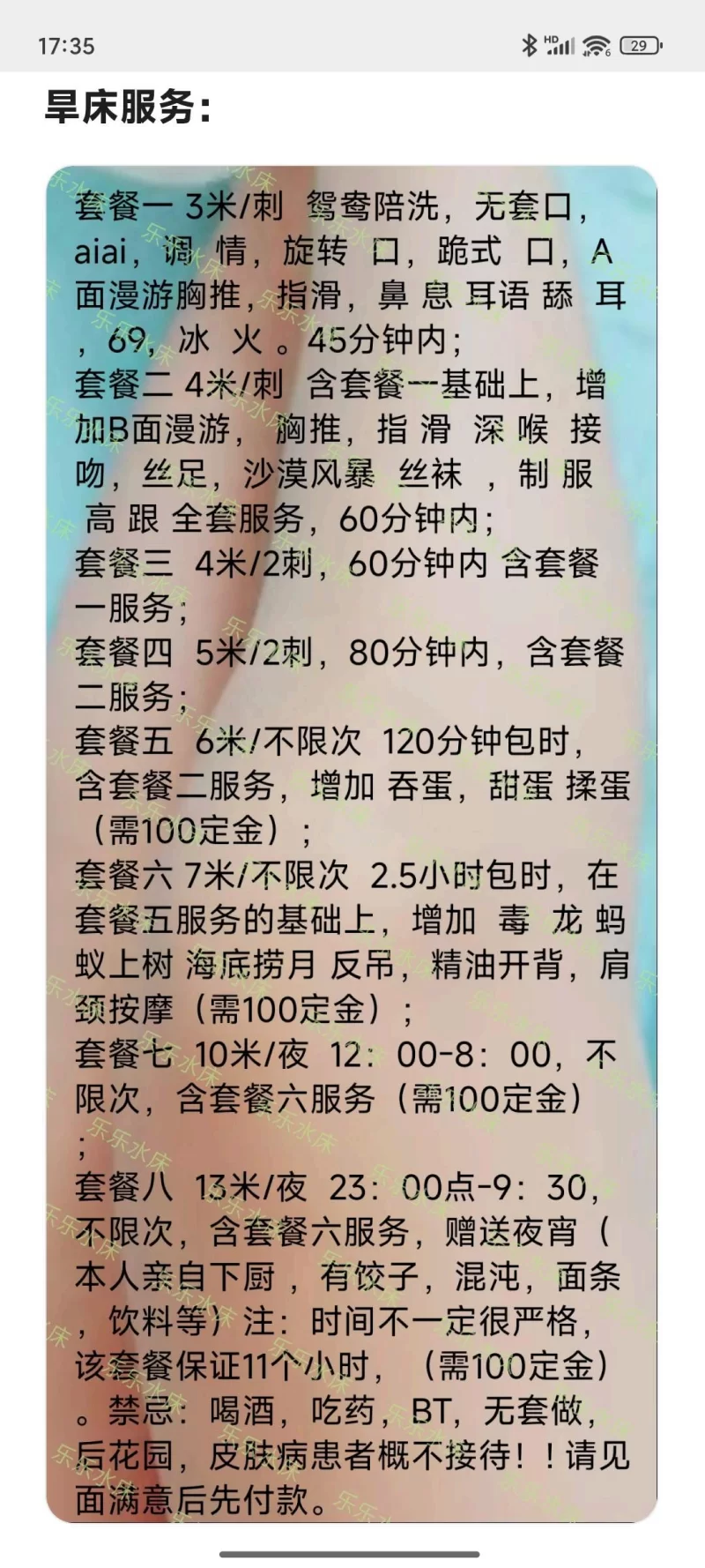 立即登录喜欢SM当狗奴的可以去试试,给你圣水喝,是一顿操作。点评:除口活外其他项目做的也还算可以,价格对这样颜值的女孩俩说真心划算,然后就是她人很高腿也长,穿她穿上黑丝,比较热情。总结:喜欢女友感觉的可以去,享受的好去处,态度热情不催人